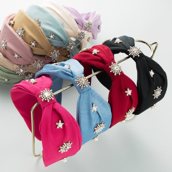 Fashion Knot Pearl Rhinestone Wide Headband