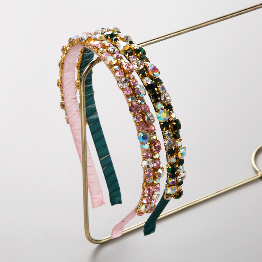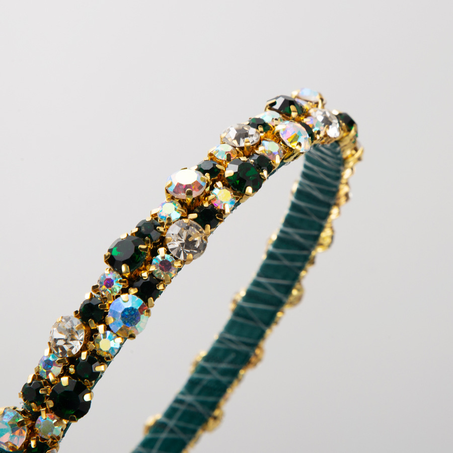 adorned with vibrant multicolor rhinestones. The fine band structure