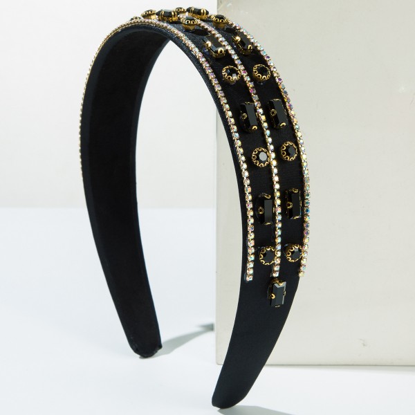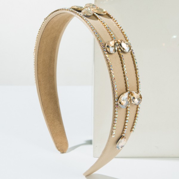 - Material: Glass rhinestones, resin beads, alloy base, fabric-wrapped band