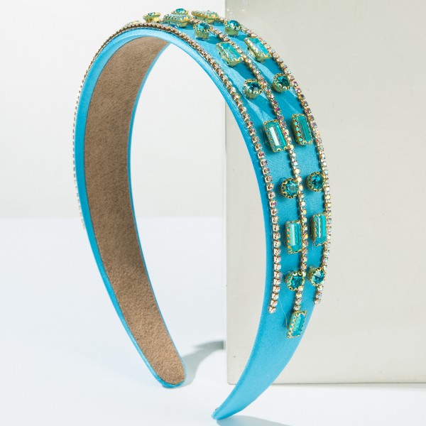 velvet and decorated with dazzling crystals, it features a wide, padded