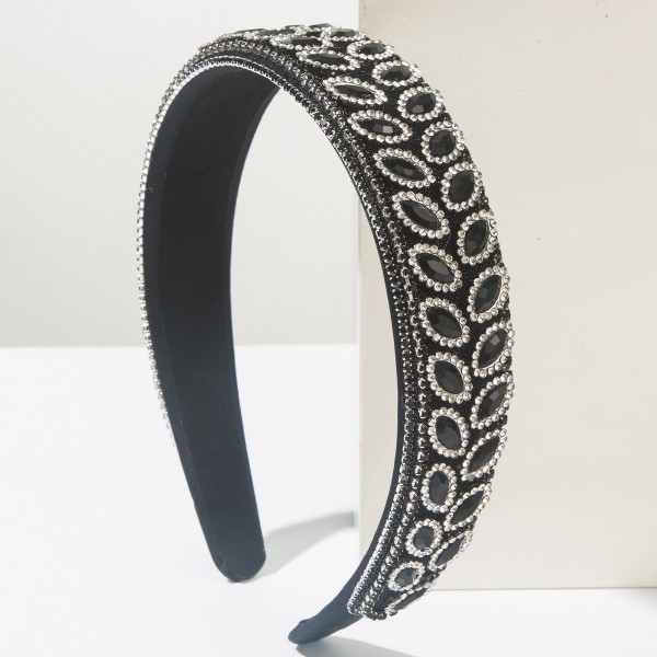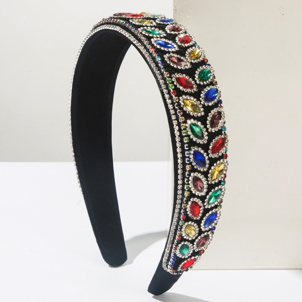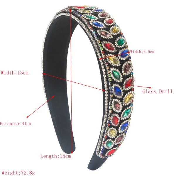 - Material: Glass rhinestones, resin beads, alloy base, fabric-wrapped band