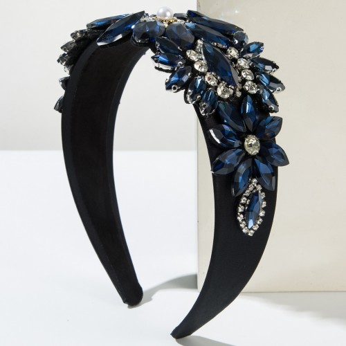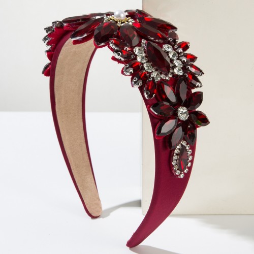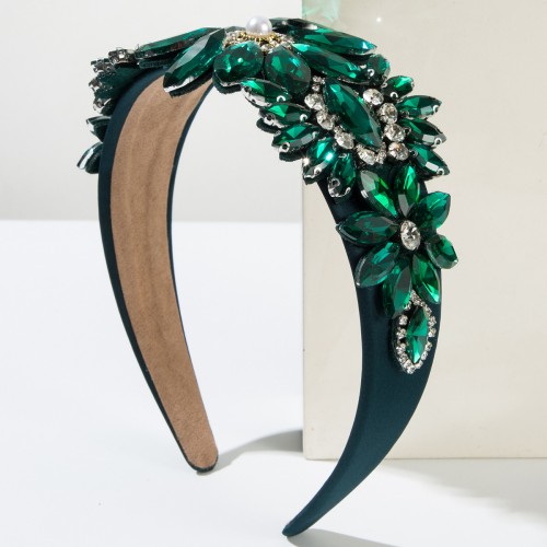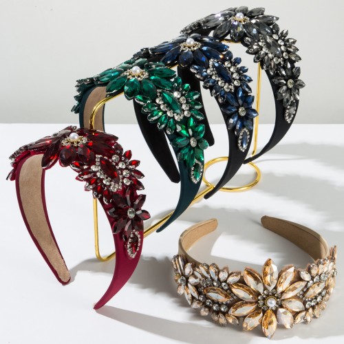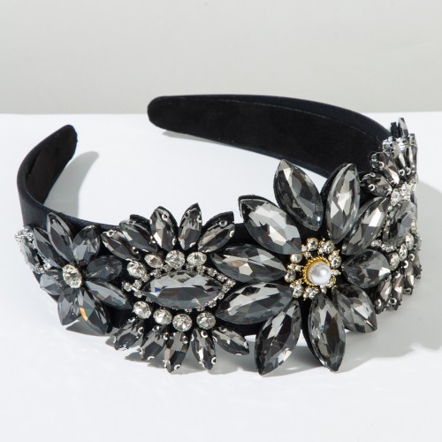 Baroque Floral Wide Headband with Handcrafted Glass
