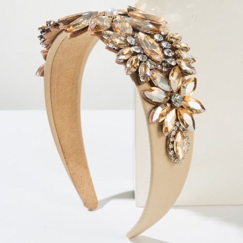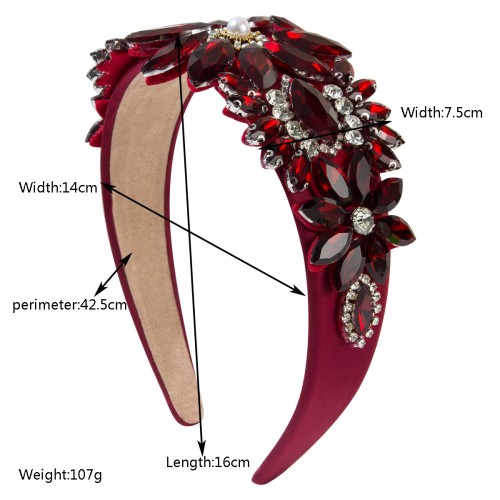 - Material: Glass rhinestones, resin beads, alloy base, fabric-wrapped band
