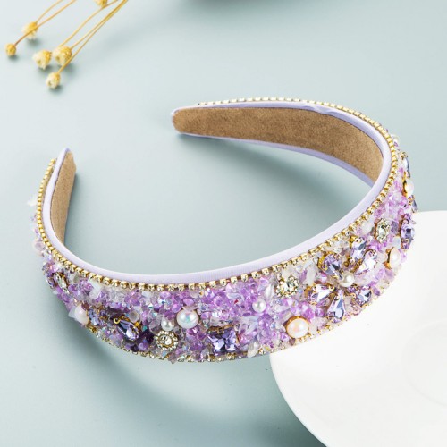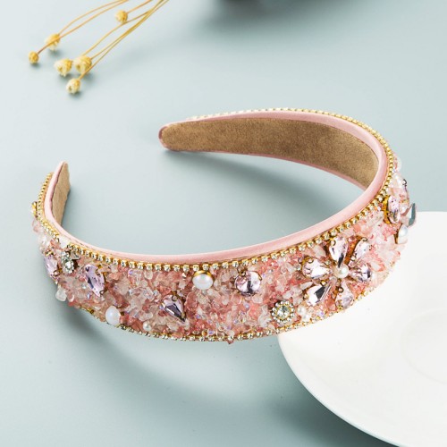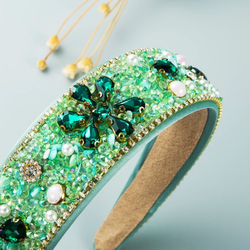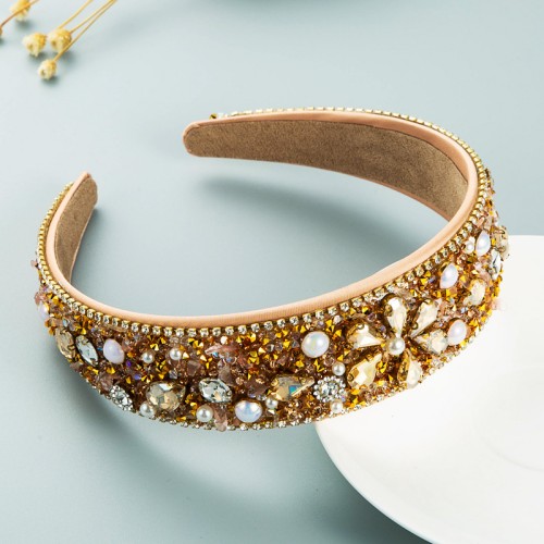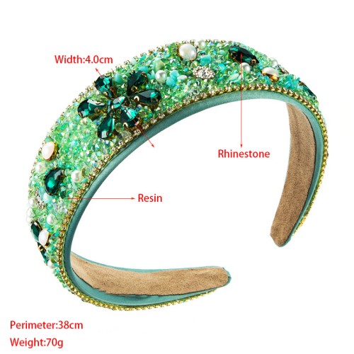 - Material: Glass rhinestones, resin beads, alloy base, fabric-wrapped band